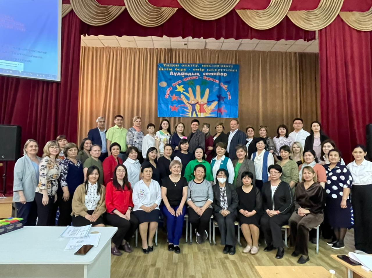 барлық бала тең" "Өрлеу" БАҰО филиалы республикалық институтының тренерлерімен бірлесе отырып семинар өткіздік. Мақсаты: Мүмкіндігі шектеулі балаларды психолого-педагогикалық қолдауды іске асыру және инклюзивті білім беруді орындау арқылы тең құқылы тұлға болуға мүмкіндік жасау.