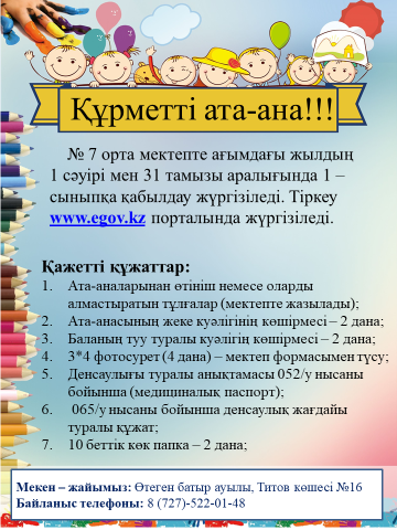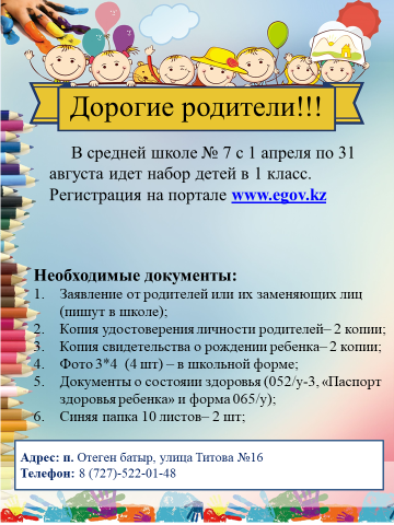 1 сыныпқа қабылдау » №7 ОРТА МЕКТЕП