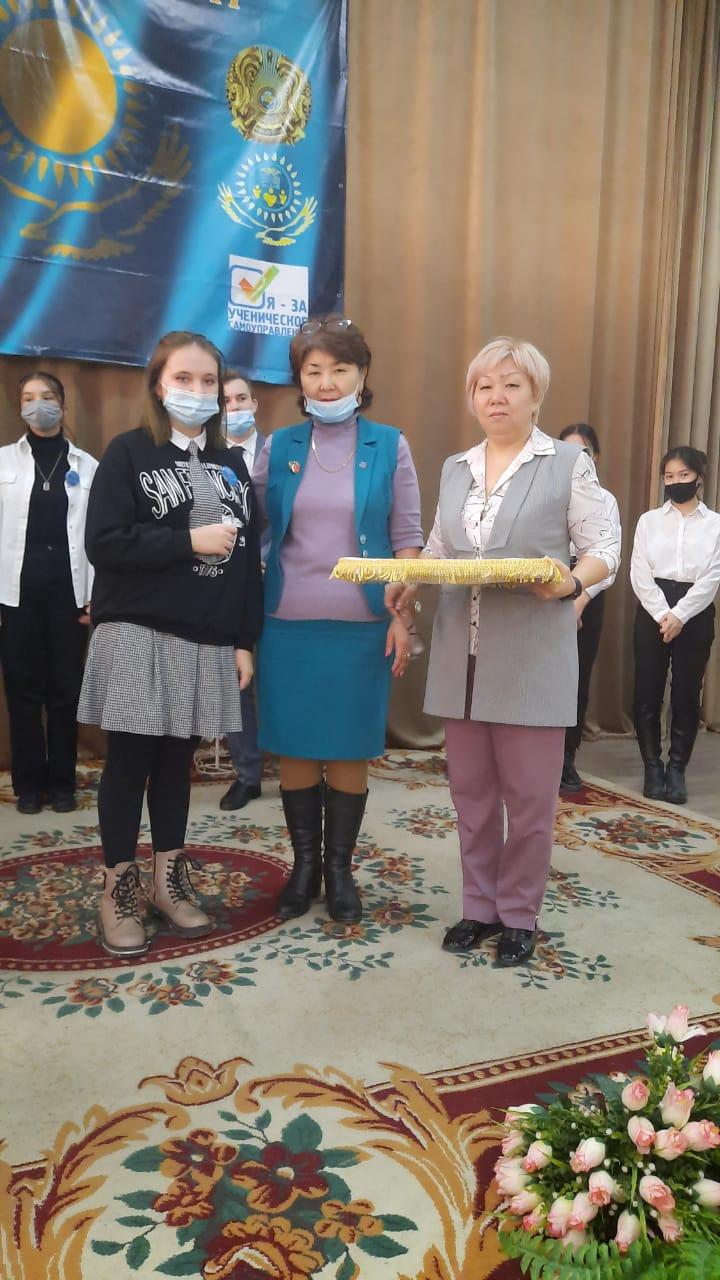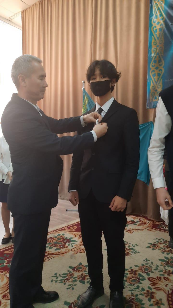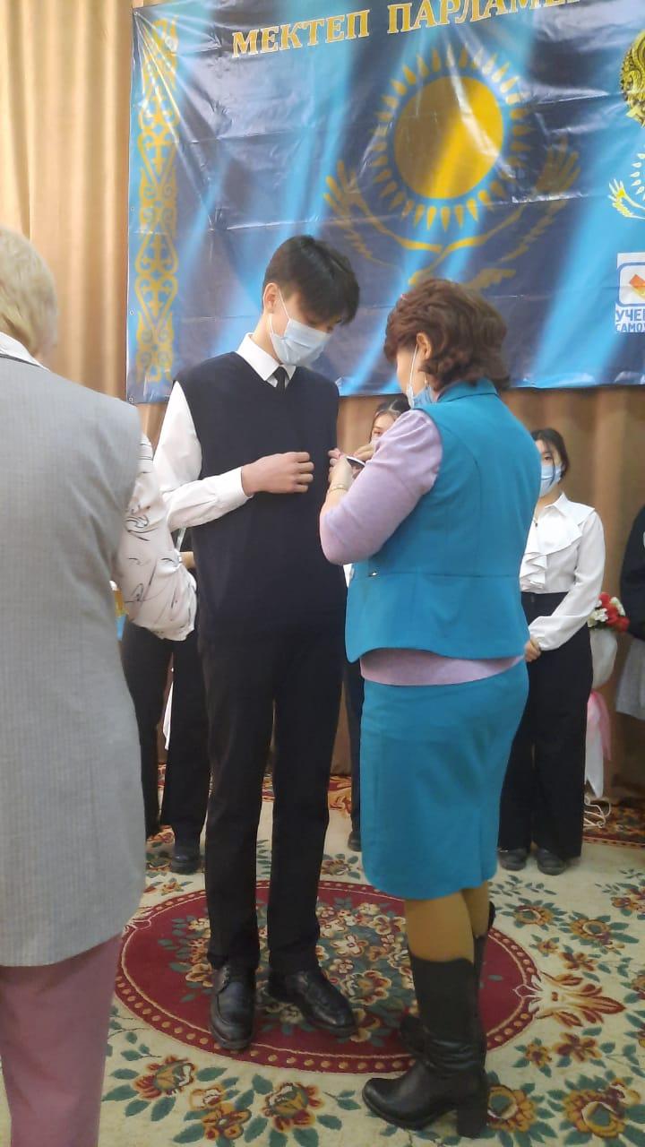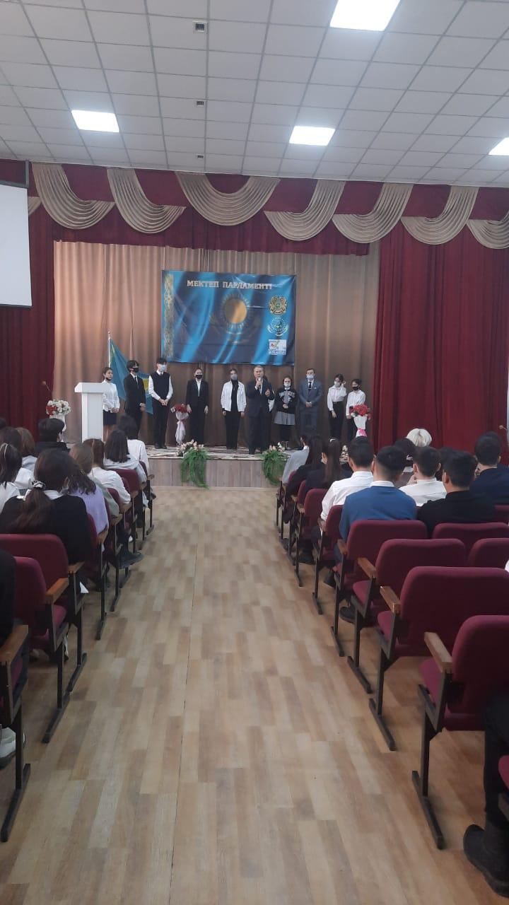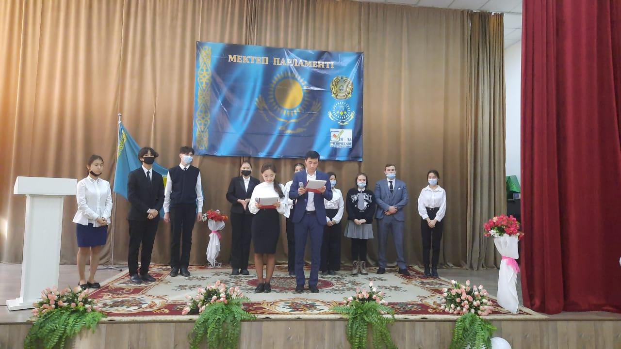 Мектептің тәрбие ісі жөніндегі орынбасары Жамиля Казакбаевна және бейіндік оқыту жөніндегі орынбасары Бакберген Азиевич жаңа президент Балжанды қызметке тағайындалуымен құттықтап, оған толағай табыстар тіледі. Өз кезегінде, Балжан оқушылар мен ұстаздар алдында салтанатты ант қабылдады және мектептің өзіне деген жоғары сеніміне алғысын білдірді. Барлық қатысушы оқушылар мен мұғалімдер мектеп президентін құрметпен қарсы алды.Сонымен қатар Фракциялар тағайындалып төсбелгіні табысталды.