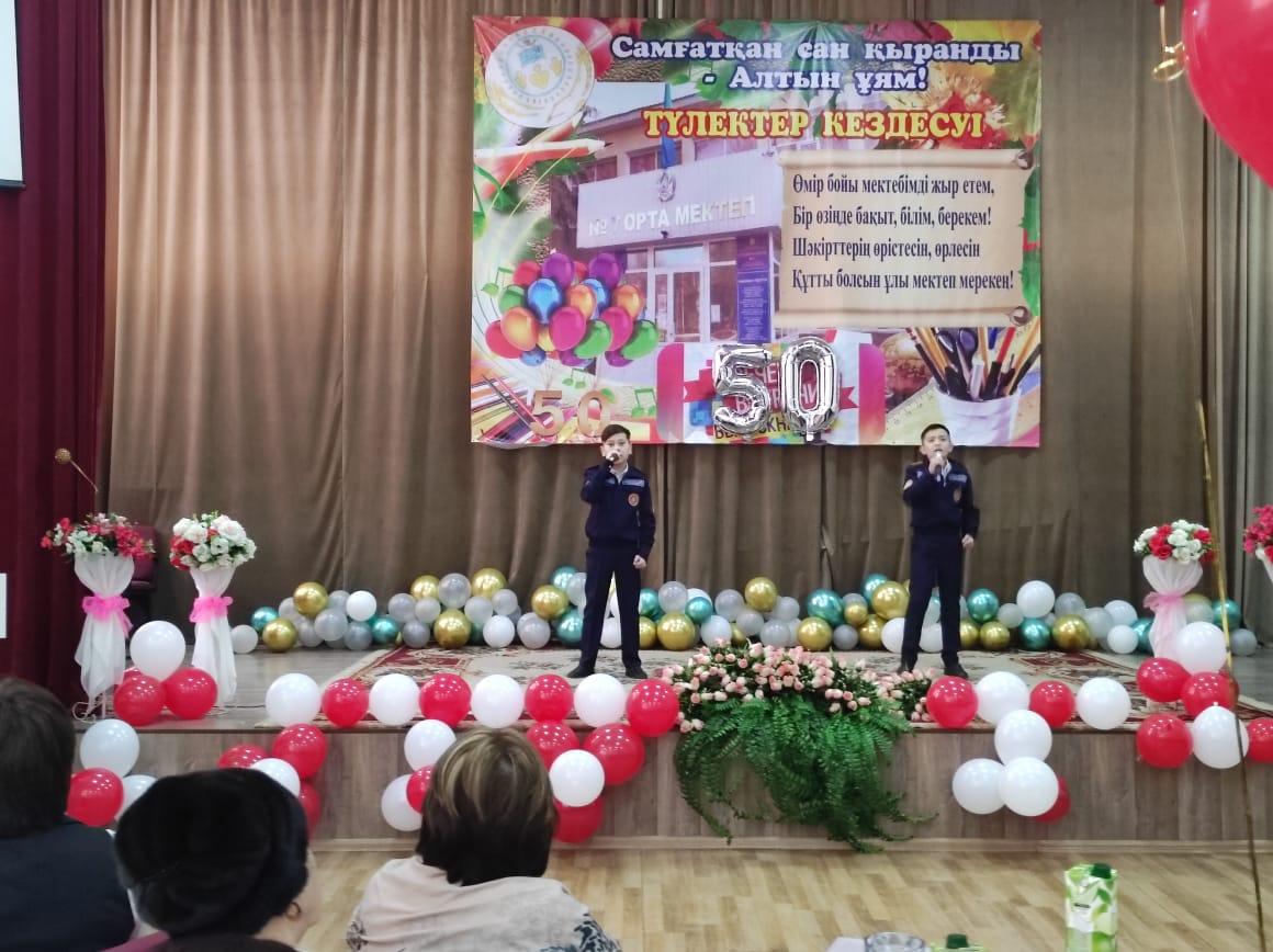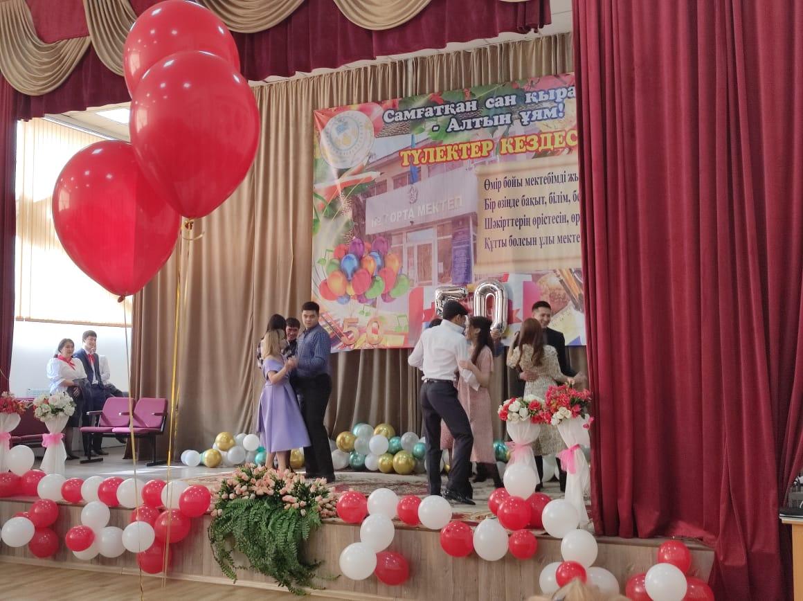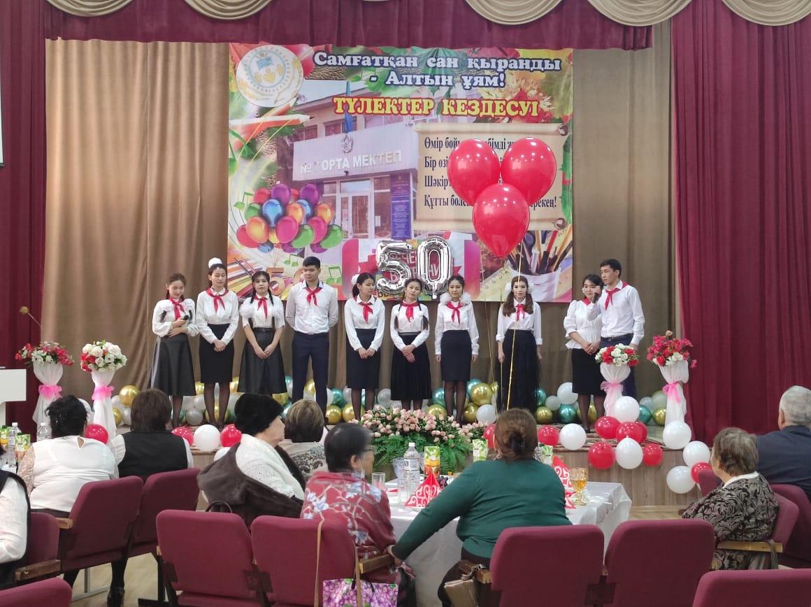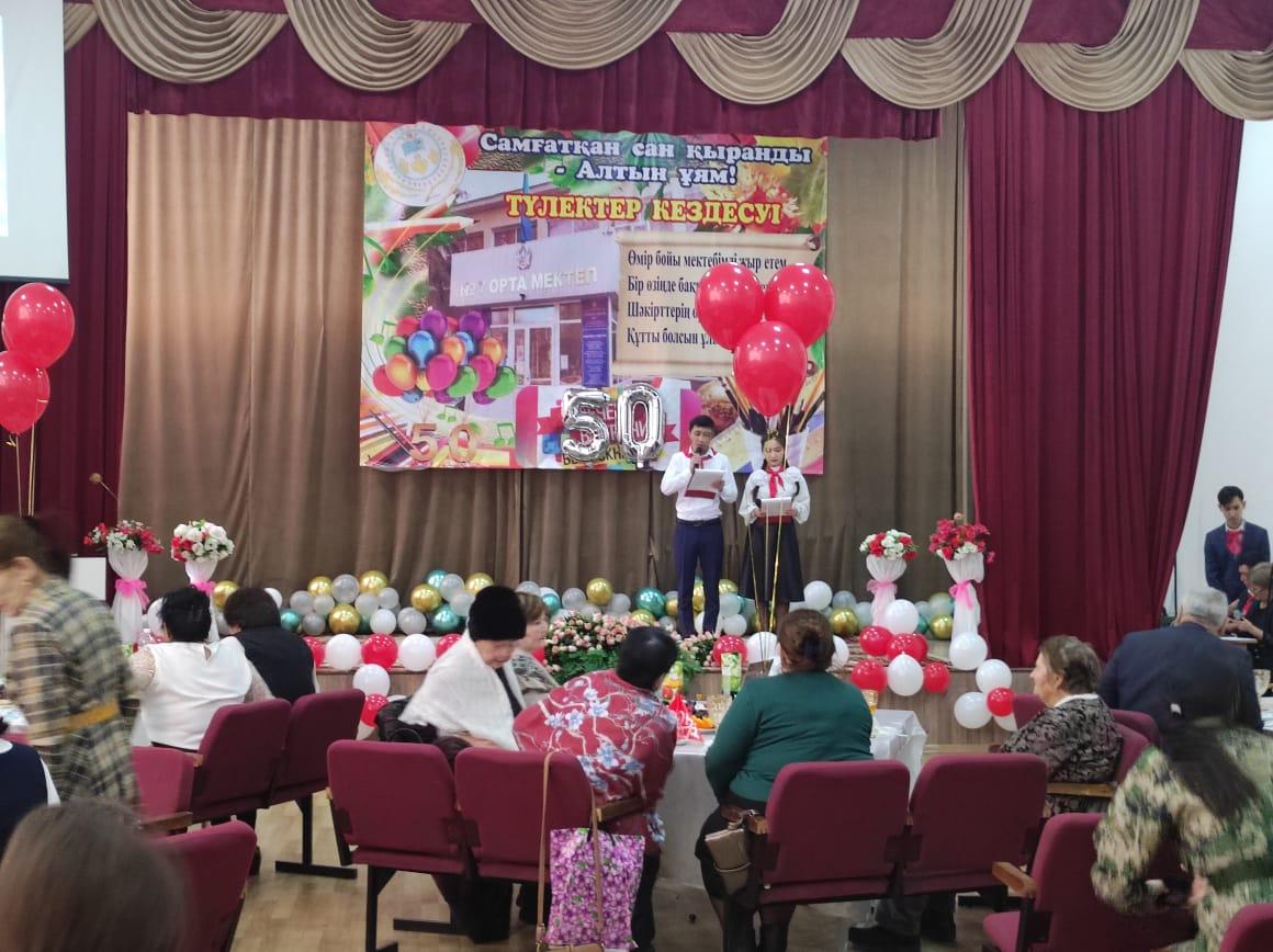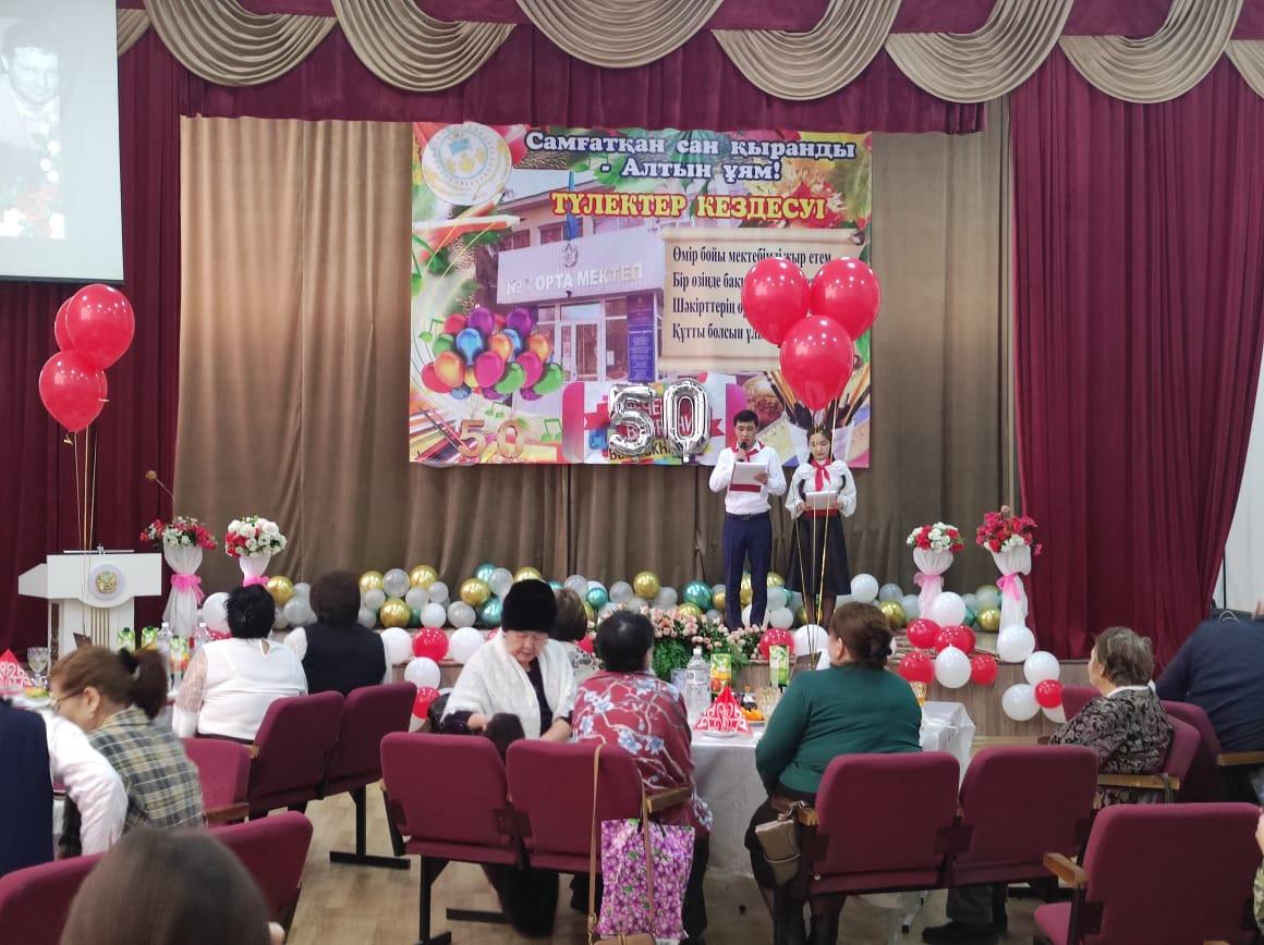 11.02.2022 ж мектебімізге 50 жыл толуына орай, Жас мамандардың ұйымдастыруымен осы мектепте қызмет істеген ардагер ұстаздармен кездесу кеші өтті. Кештің мақсаты: қиындығы мен қызығы қатар жүретін ұстаздық жолында еңбек еткен ұстаздарды ұлықтап, жас ұрпақты, мектебіміздегі жас мамандарды адамгершілікке, мейірімділікке, үлкенді құрметтеуге, адами құндылықтарды бойларына сіңіру, тәрбиелеу. Кешке арнайы шақырылған қонақтарға өнерлі оқушылар мен ұстаздар әдемі кеш сыйлады.  Мектеп директоры Туреходжаева Зохида Тұрсынбекқызы мектептің 50  жылдық мерекесімен құттықтап, қонақтарға ізгі тілектерін айтты. Кеш соңында ардагерлер де өз жүрекжарды тілектерін айтып, аздаған сый-сыяпаттармен тарқады. Мектебіміздің жас мамандары әдеттегідей бар өнерлерін ортаға салып, ретро стильде киініп, кеш қонақтарына өз замандарын  еске саларлықтай көріністер қойды. Ардагер ұстаздар алғыстарын жаудырып, тамаша көңіл сыйлағандықтарын айтты. "Ұстазы жақсының-ұстамы жақсы" демекші, ардагер ұстаздардан тәлім-тәрбие алған, мектебімізден түлеп ұшып, ұстаздық жолында қызмет істеп жүрген жас мамандарымыз да жоқ емес. Тәуелсіздігіміздің 30 жылдығымен тұспа-тұс келген мектебіміздің 50 жылдық мерейтойы құтты болсын. Ұрпағымыз білімді, саналы, салиқалы болсын! Алдымызда отырған шәкірттеріміз үкілі үмітімізді ақтап, мектебіміздің мәртебесін көтере берсін.