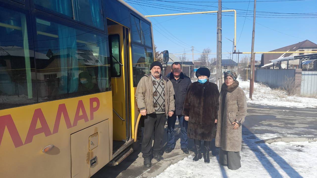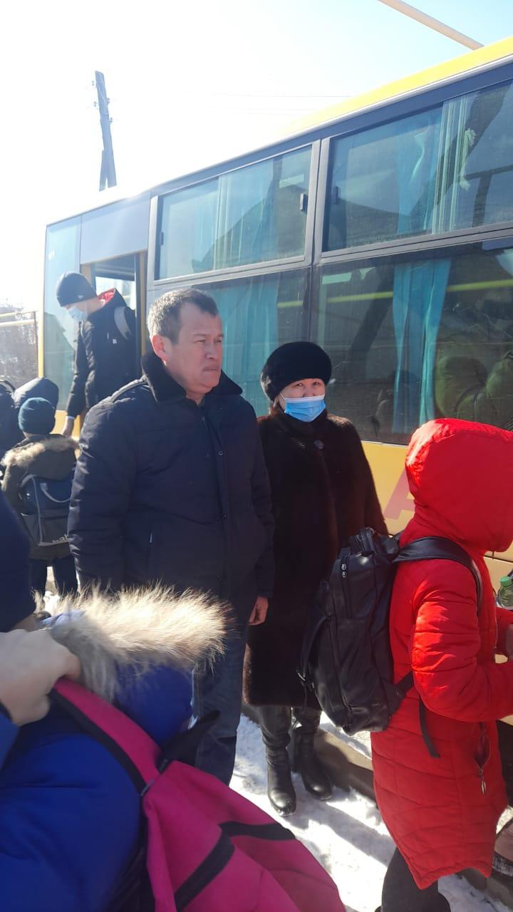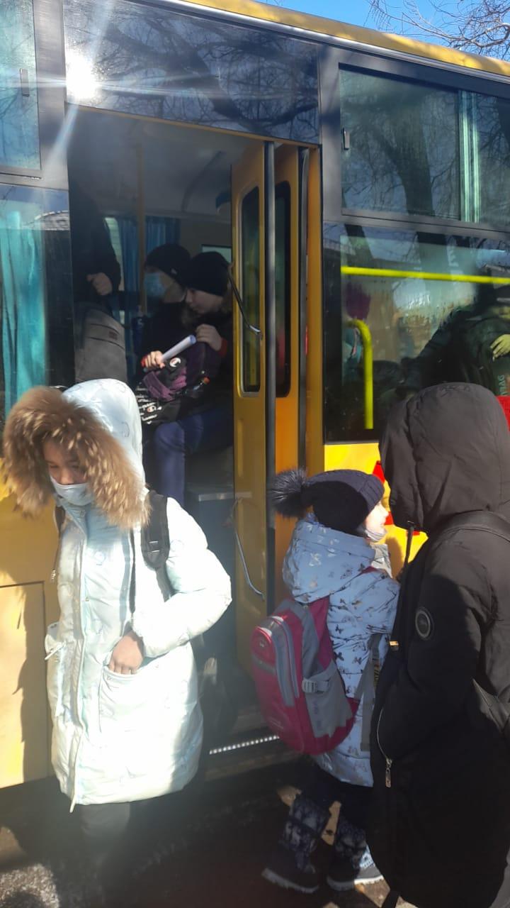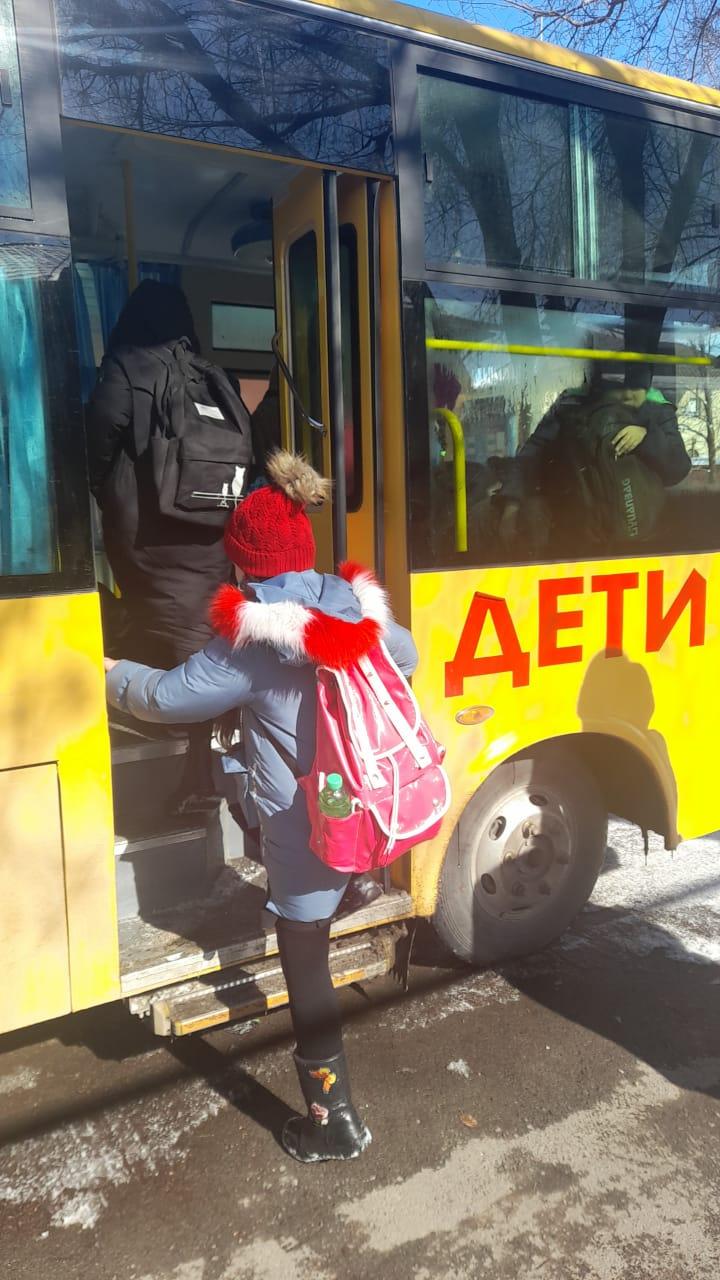 Автобуста талапқа сай «Балалар» деген белгі, жүргізушіде қозғалыс кестесі мен балалардың тізімі бар.