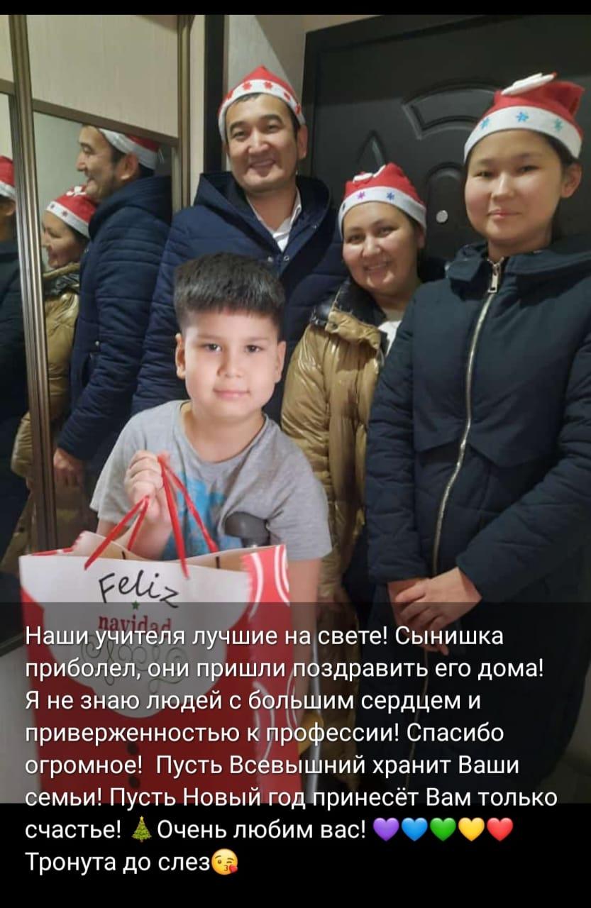 2022 жылдың желтоқсан айында үйде оқитын балаларға пән мұғалімдері мен сынып жетекшілері жаңа жылдық сыйлықтарын табыс етіп, өз тілектерін білдірді. 2 «Ә» сынып оқушысы Аманжол Медина мектепішілік шырша мерекесіне қатысты. 2023 жылдың қаңтар айында жаңадан қосылған үйден оқитын оқушылардың тұрмыс жағдайымен,оқуға жағдайы бар орындарымен танысып,ата-аналарымен байланысты нығайту үшін үйден оқитын оқушылардың үйлері араланып,үй тұрмыстық жағдайын тексеру АКТ-сі құрылды.