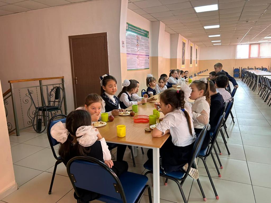 Оқушылар арнайы бекітілген кесте бойынша, сынып жетекшісінің қадағалауымен ыстық тамақтарын күнделікті ішіп отырады.