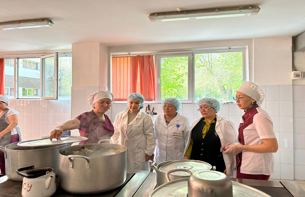 28.04.2023 жылы мектеп асханасында оқушылардың ыстық тамақпен қамтамасыз етілуін тексеру сәтінен көріністер