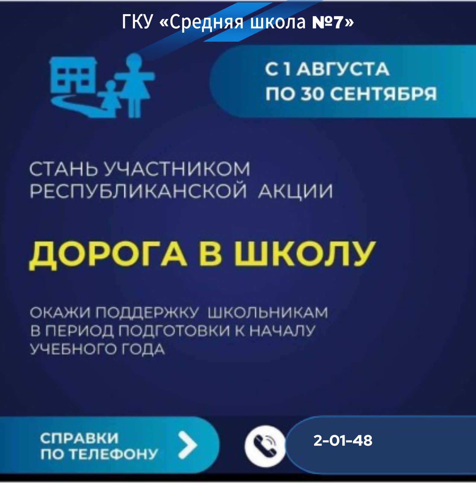 01 тамыздан 30 қыркүйекке дейін Мектепке жол республикалық акциясы басталды. Құрметті ауылымыздың кәсіпкер, жаны жомарт азаматтары! Сіздерді акцияға белсене қатысып, әлеуметтік аз қамтылған оқушылардың мектепке келуіне, қажетті жабдықтарын алуға жәрдем беруге шақырамыз.