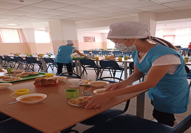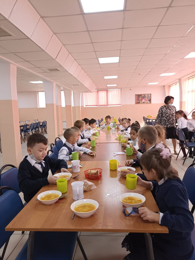 Осыған байланысты мектебіміздің асханасы таңертеңгі 8.30-17.30-ге дейін жұмыс жасайды.Мектеп асханасынан арнайы кестеге байланысты бастауыш және кадет сынып оқушылары, Жалпыға бірдей білім беру қорынан тегін тамақтанатын 233 оқушы тамақтанады. Мектеп асханасында мұғалімдер және әкімшілік тарапынан кезекшілік ұйымдастырылған. Күнделікті тамақтың сапасы мен берілу мөлшері (норма) мектептік құрылған бақылау топтары мен мектеп медбикесі С.Д.Сарсембаева тарапынан бақылауға алынған.
