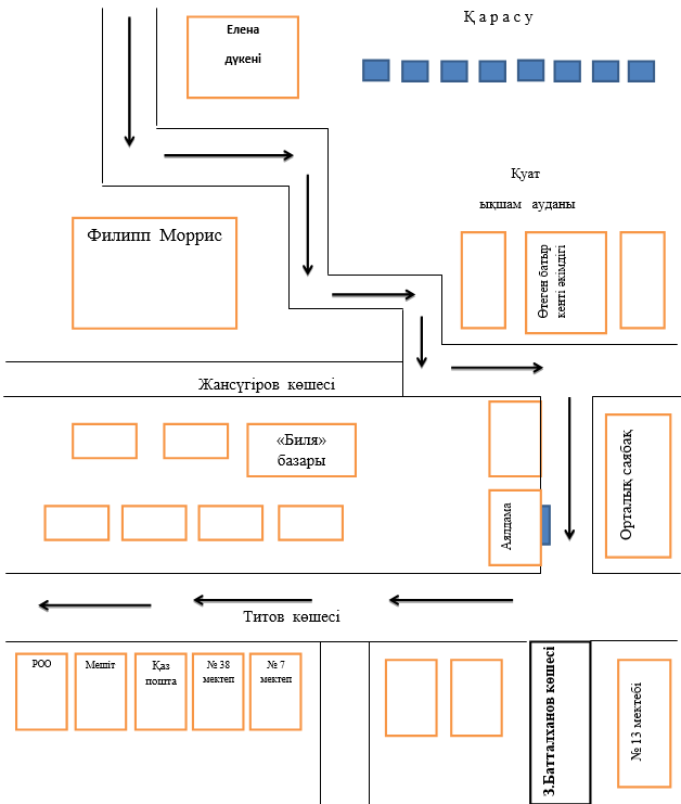 Қарасу ықшам ауданынан Өтеген батыр кентіне дейінгі бағыттағы жол сызбасы » №7 ОРТА МЕКТЕП